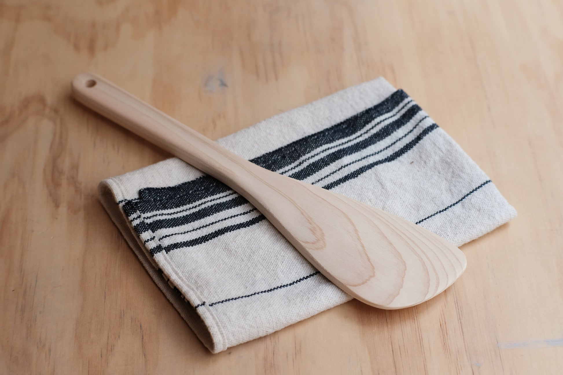 Made from Japanese hinoki cypress, this turning spatula is light, smooth, and gentle on cookware. The slightly rounded shape makes for both easy turning and stirring.