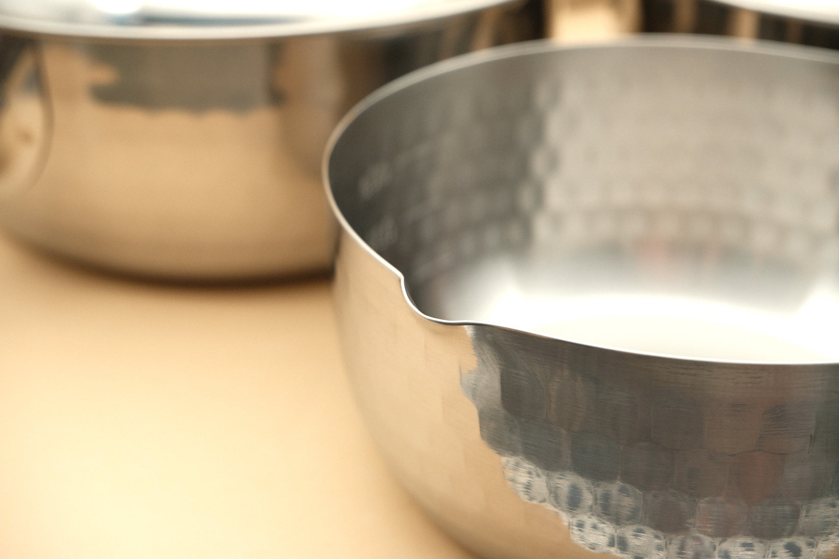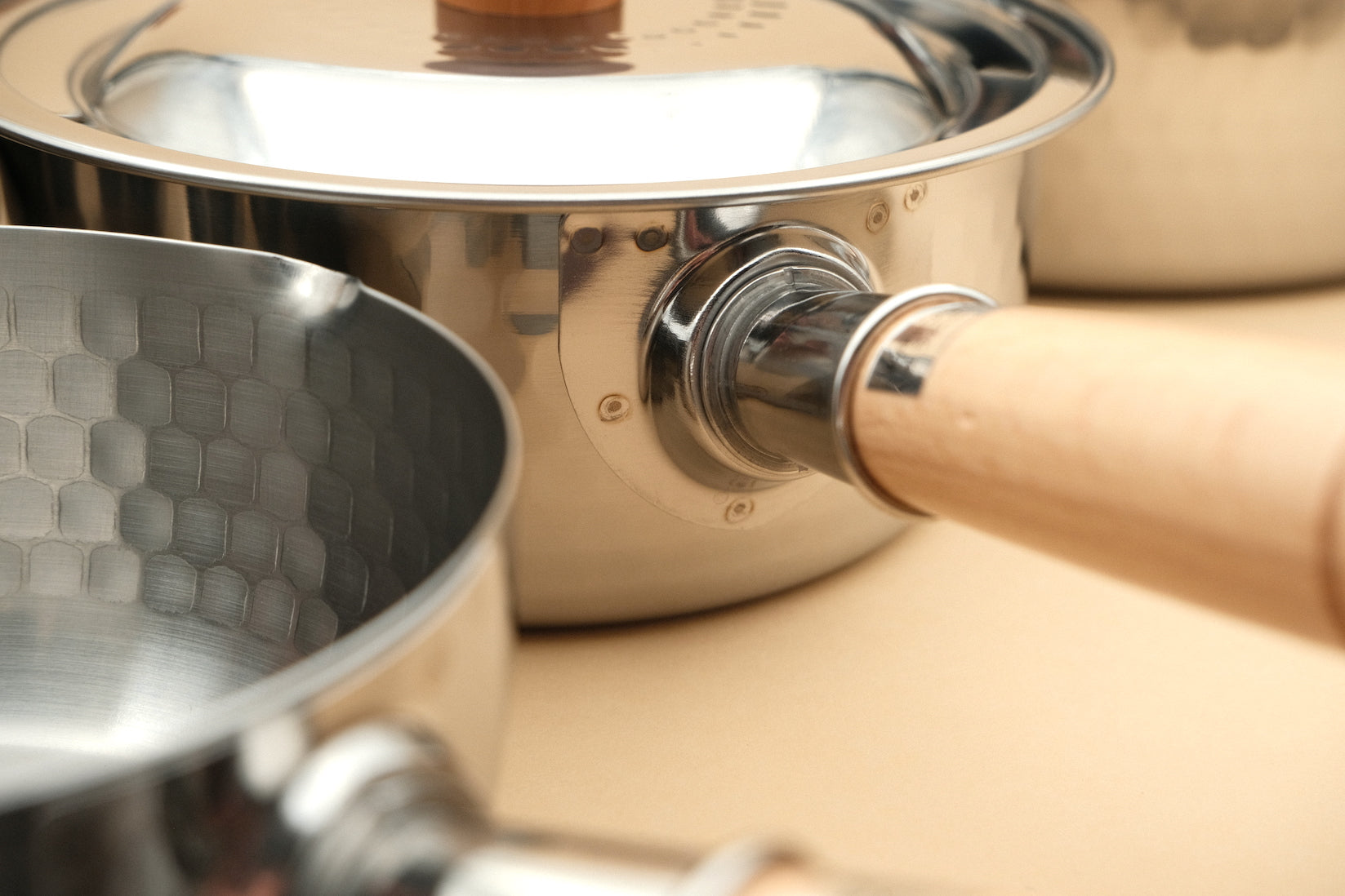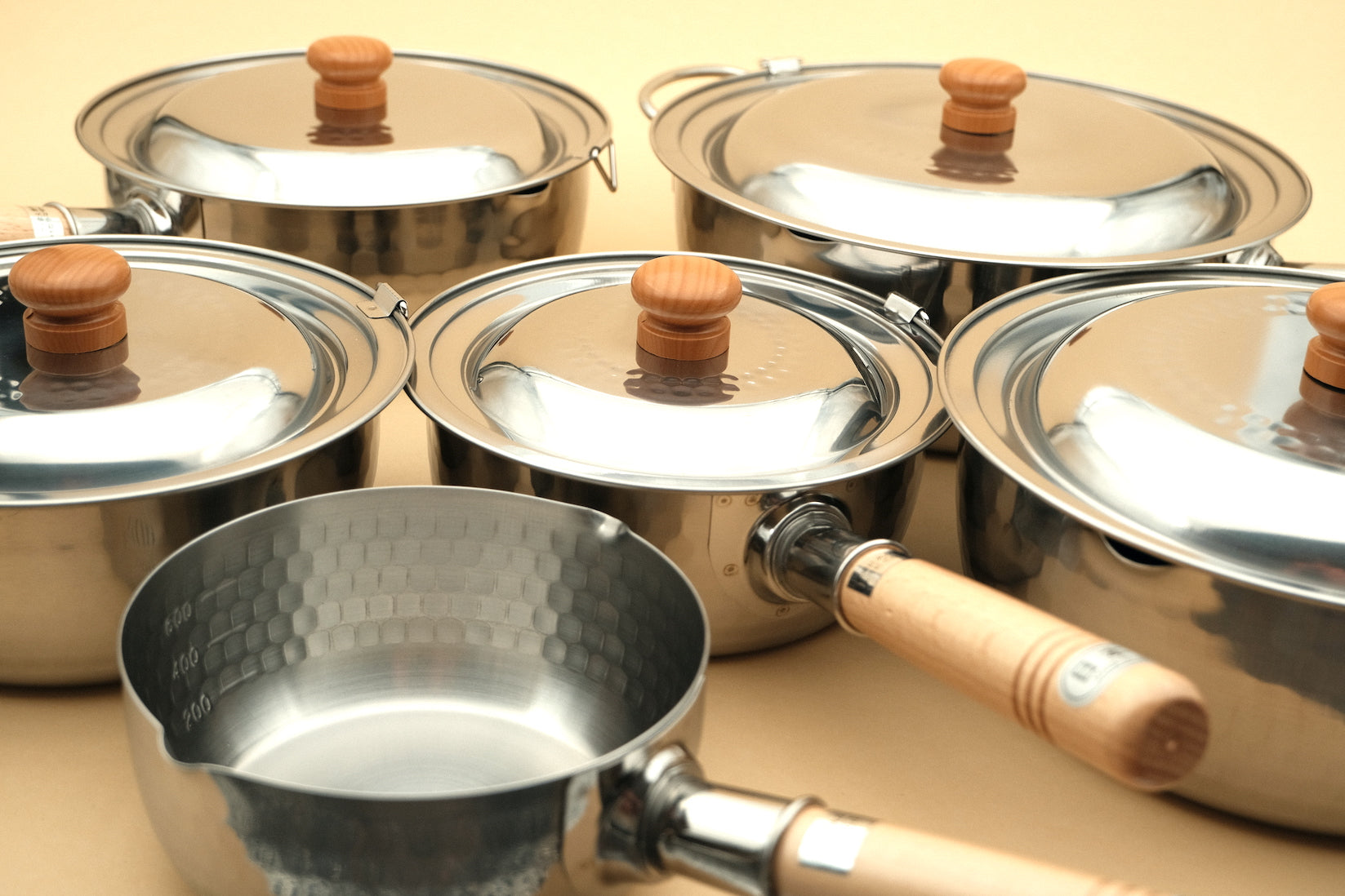 The quintessential Japanese saucepan. A yukihira-nabe might be found in every Japanese home. Made of aluminum, tinned copper or thin stainless steel, the yukihira is very quick to heat up and boils liquids rapidly. The aesthetically pleasing hammered appearance and the comfortable wooden handle make for an iconic piece of Japanese kitchenware.